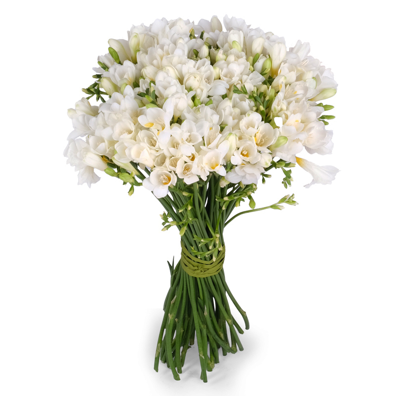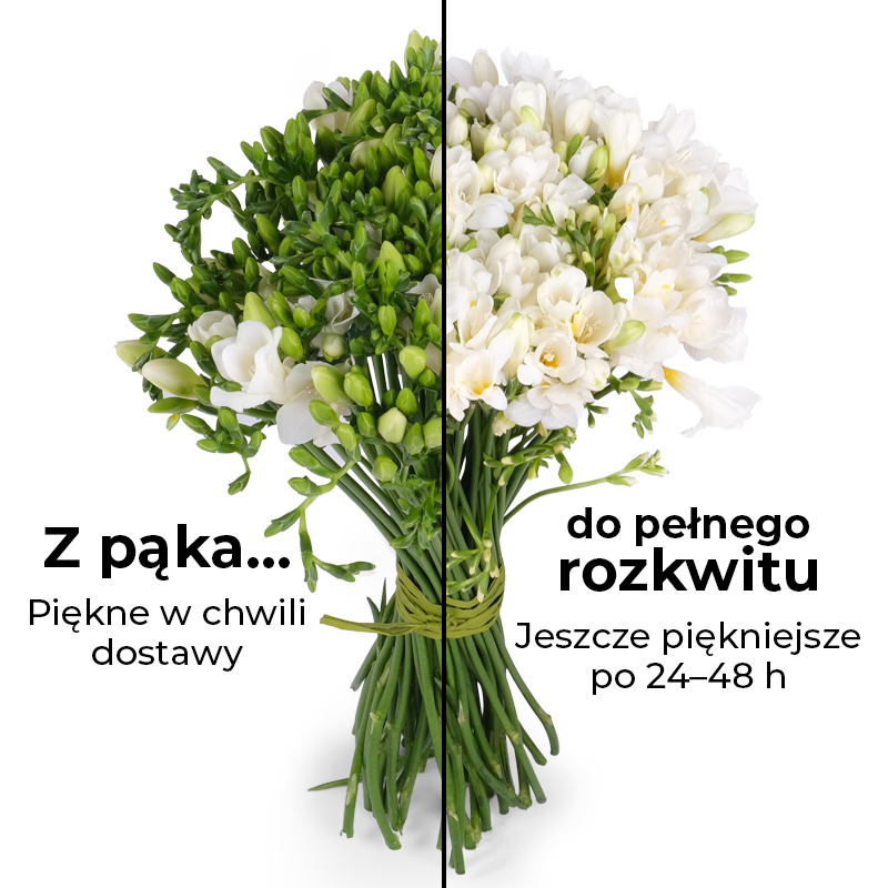 Bukiet „Białe frezje” to wybór osób, które kochają naturalność i subtelność. Minimalistyczny, ale efektowny.