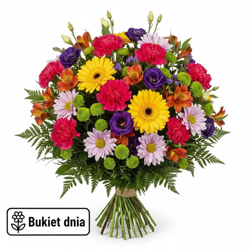 Bukiet Dnia przygotowywany jest każdego dnia z najświeższych kwiatów dostępnych w kwiaciarni. Florystka samodzielnie dobiera kwiaty i kolorystykę. W kompozycjach wykorzystywane są kwiaty sezonowe oraz całoroczne, tworząc naturalny i estetyczny bukiet. To doskonały wybór na każdą okazję. Zamów bukiet z dostawą na terenie Elbląga i powierz realizację lokalnej florystce.