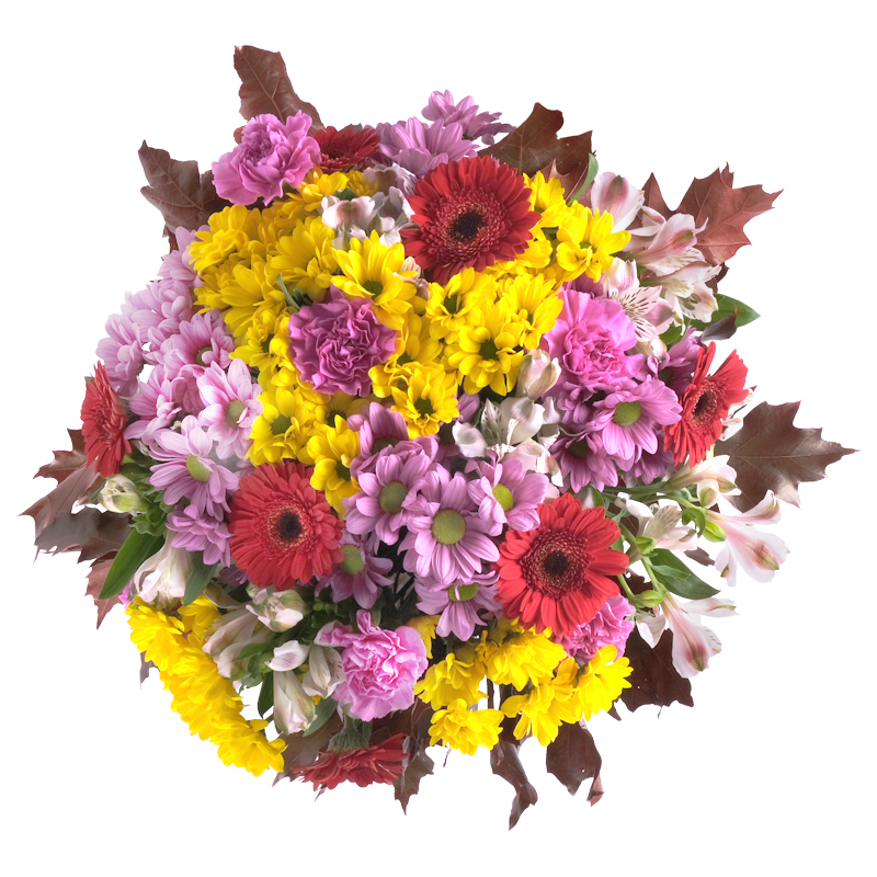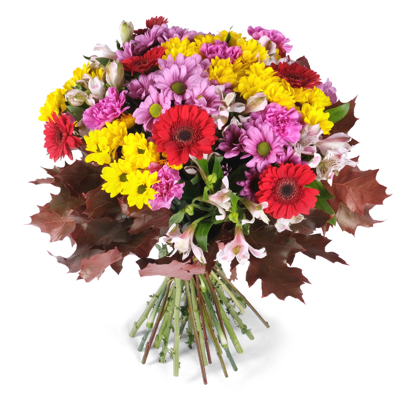 Różnorodne kształty gerber, margerytek i alstromerii tworzą kompozycję, która przyciąga wzrok i zachwyca detalami. Doskonały prezent dla osób o wrażliwym sercu i wyrafinowanym guście. Pokaż klasę i elegancję. Nie zapomnij o liściku!