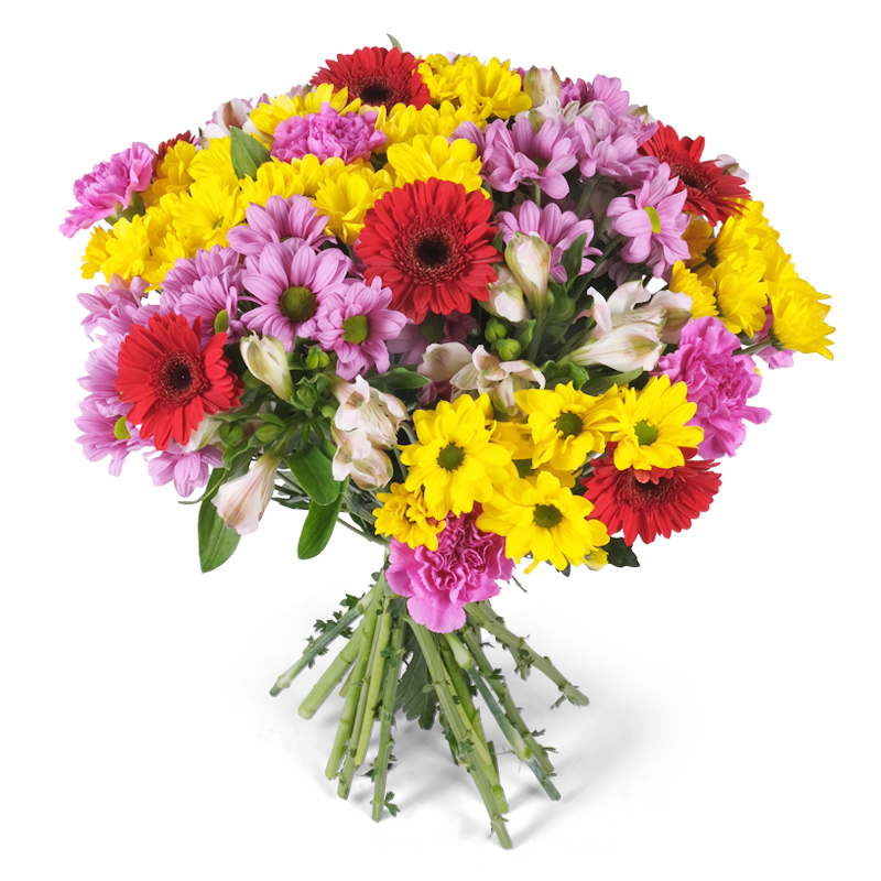 Ten bukiet to dowód na to, że życie jest piękne, kolorowe i warte świętowania. Kolorowe kwiaty tworzą radosną kompozycję, która od razu budzi uśmiech. Dzięki bogatej formie bukiet zachwyca z każdej strony. Podaruj go komuś, kto kocha intensywne doznania.