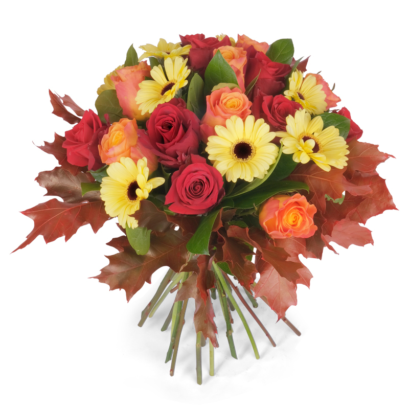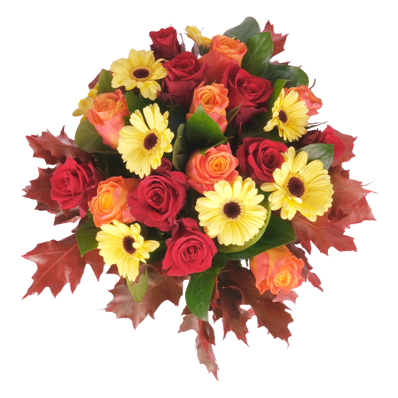 Nasz bukiet to prawdziwa pochwała prostoty i elegancji. „Obfita Jesień” łączy róże, gerbery i liście klonu w harmonijną całość. To kompozycja, która dodaje wnętrzu przyjemnego ciepła. Świetny pomysł na prezent. Bukiet, który urzeka swoją formą.