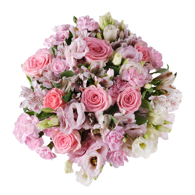 Róża, goździk, eustoma i alstromeria w pastelowej tonacji tworzą bukiet „Siła kobiecości”, który doskonale sprawdzi się jako prezent pełen wyrazu. Warto dodać bilecik.